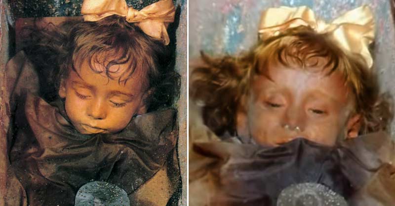 About a 100 years ago, in 1920, a young girl named Rosalia Lombardo died at the age of two due to an aggravated case of pneumonia. Her father, Mario Lombardo was shocked and traumatized by her sudden passing and refused to bury his precious daughter. Her body was finally embalmed and preserved by Alfredo Salafia. Apparently, her father wanted to keep the little girl “as alive as possible.” The embalmer Alfredo was an expert Italian chemist and in the day was considered the best, since he had a lot of experience preserving corpses.