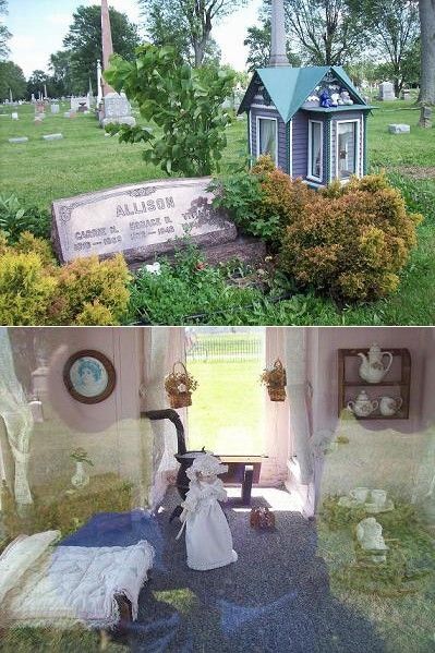 When Vivian May Allison died unexpectedly in 1899 at the age of 5, her parents decided to build her the dollhouse she had always wanted and fill it with some of her favorite dolls. Vivian’s grave is located in the Connersville City Cemetery in Indiana, USA.